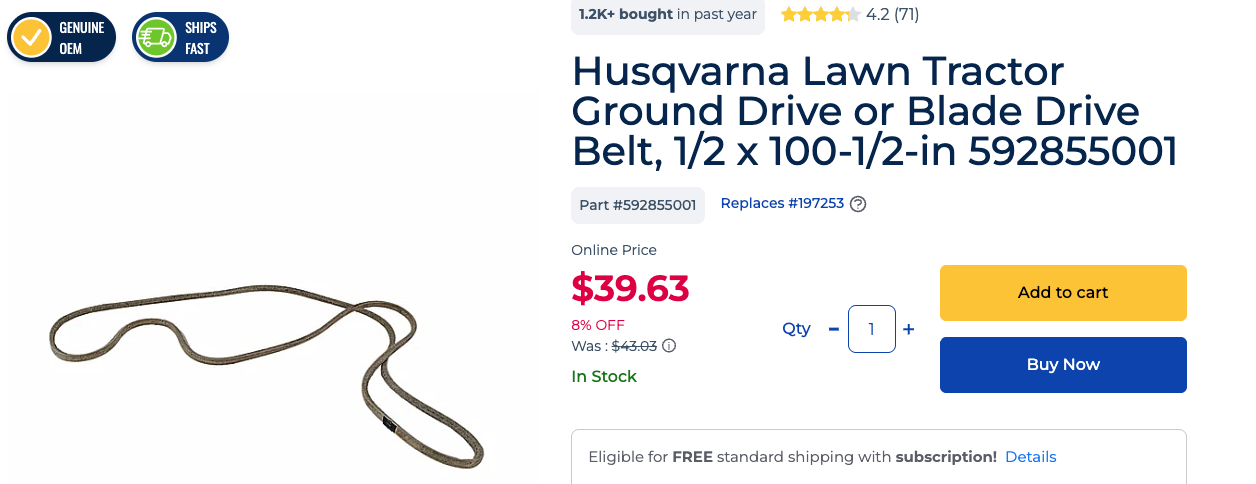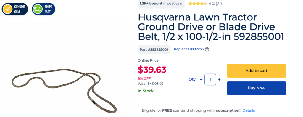 Husqvarna Lawn Tractor – Correa de tracción o de cuchillas